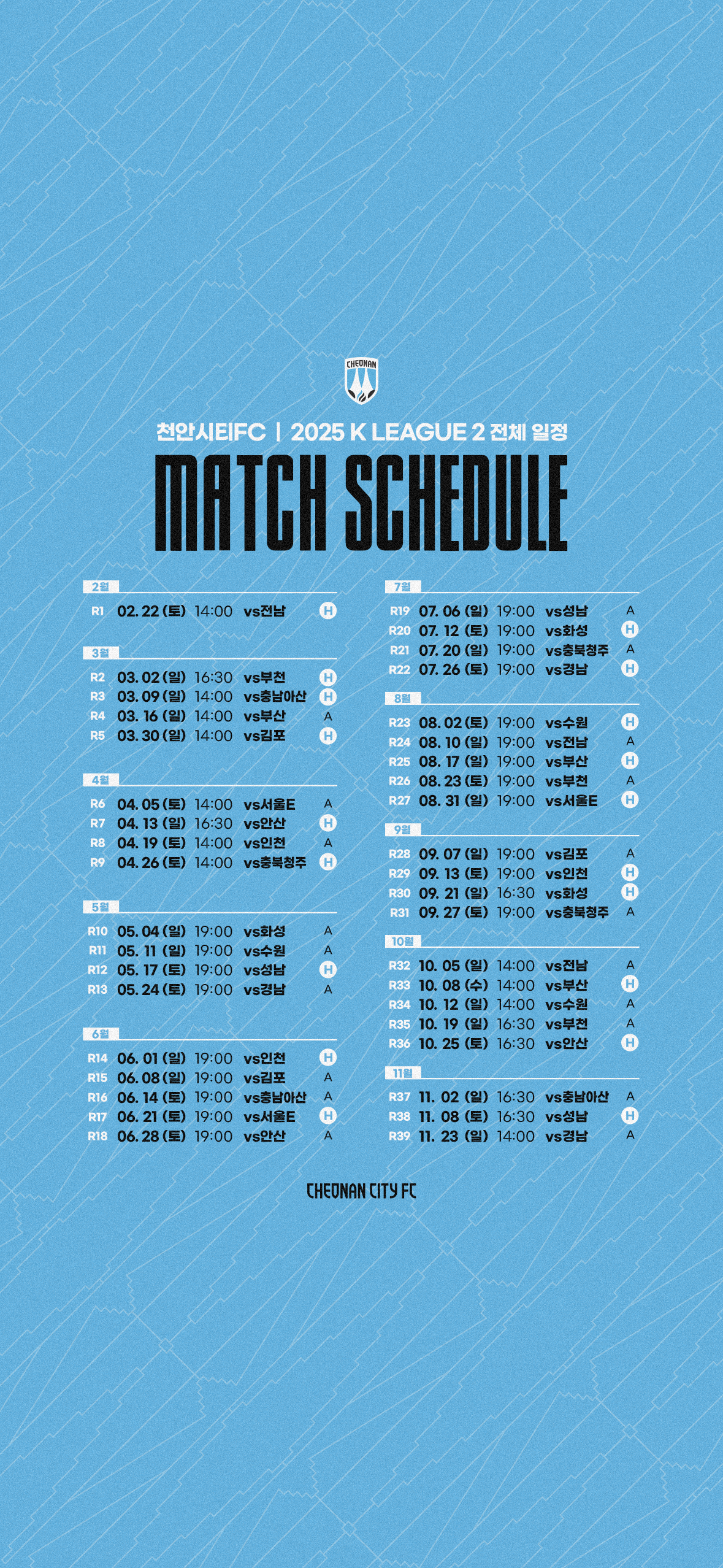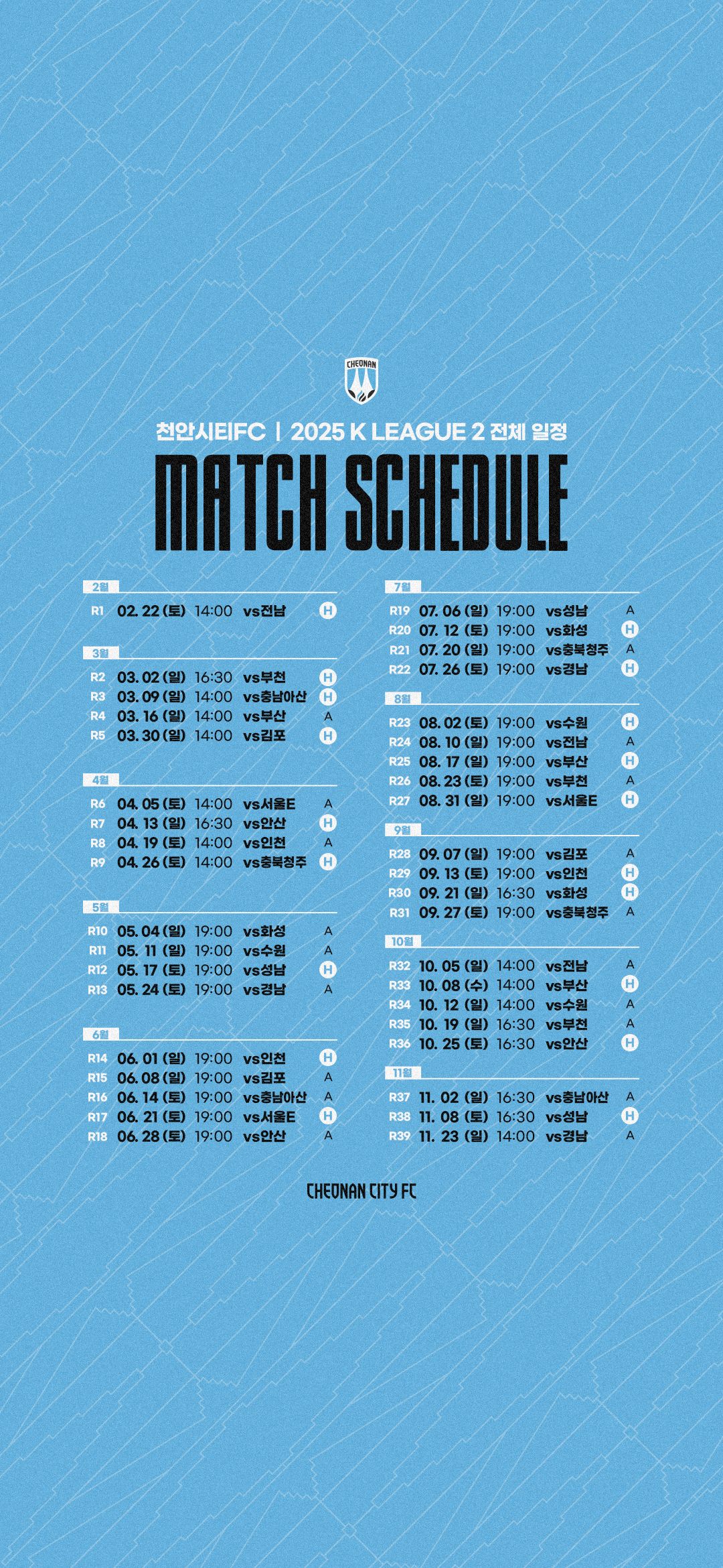 천안시티FC 2025시즌 경기일정 배경화면 (아이폰, 안드로이드, PC)