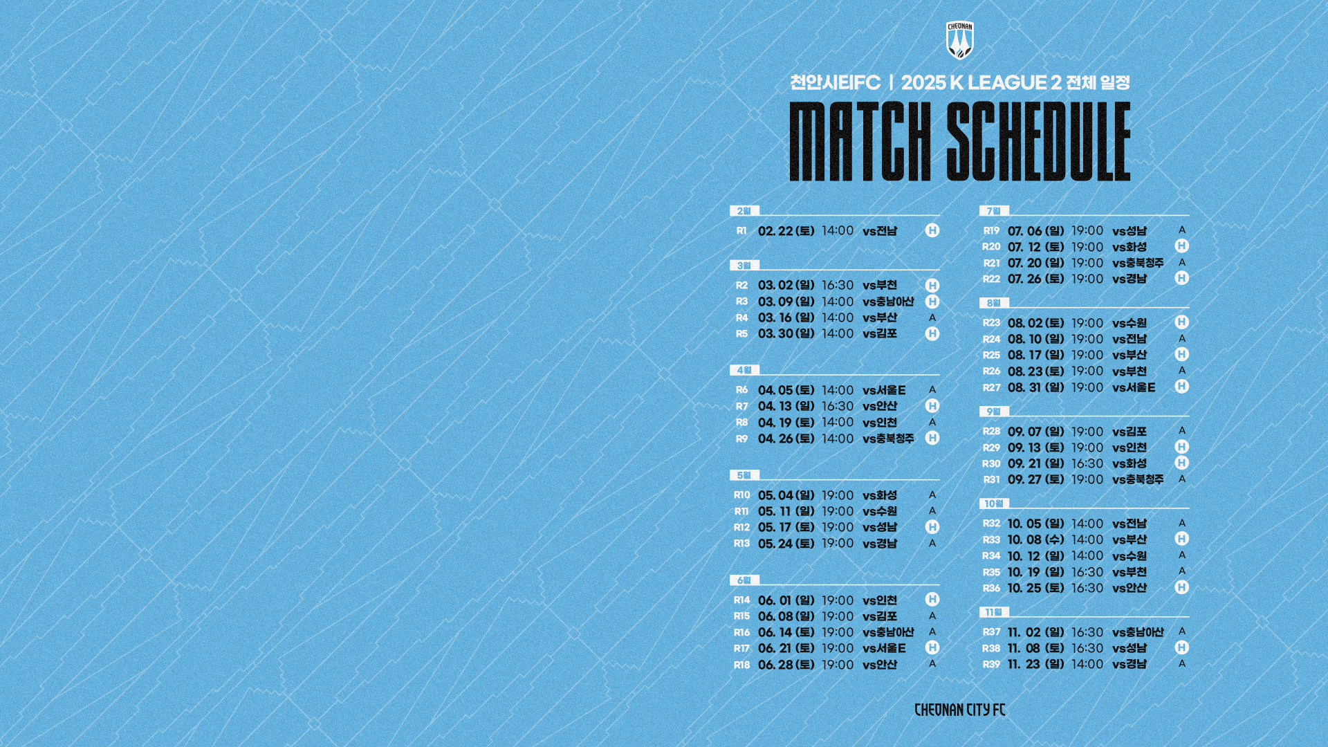 천안시티FC 2025시즌 경기일정 배경화면 (아이폰, 안드로이드, PC)